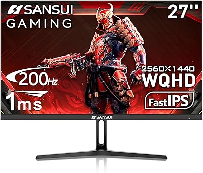 SANSUI 27 Inch WQHD 2560 x 1440 IPS Gaming Monitor, 200Hz 180Hz 1ms Computer Monitor, DP 1.2 x2 | HDMI 2.0 x2 | VESA Mount, 120% sRGB HDR Eye Care Metal Stand DP Cable Included